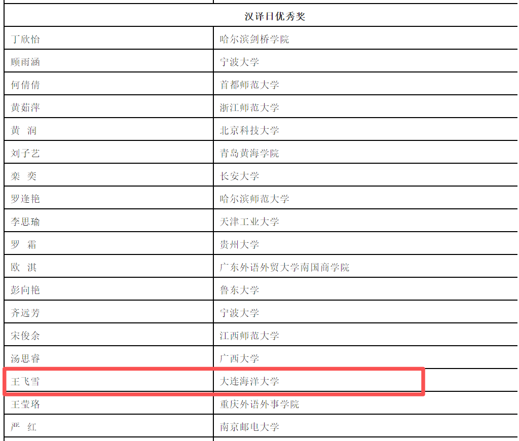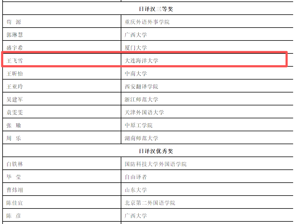 10月20日,备受瞩目的2025年第三十七届韩素音国际翻译大赛获奖名单正式揭晓。我校全网最准彩票计划网官方 学子在激烈的竞争中脱颖而出,斩获佳绩。其中,由日语教师张苏指导的2024级日语笔译专业研究生王飞雪,凭借优异的双语转换能力、文化理解深度及语言表达功底,荣获日译汉组三等奖和汉译日组优秀奖;2021级英语笔译专业研究生随德玉荣获汉译英组优秀奖。