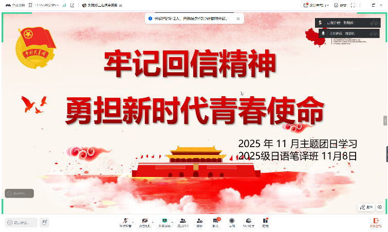 线下,同学们通过视频展播、文字纪实再现基层支教、志愿服务场景,直观解读回信精神的实践内核,大家相互交流学习心得,将精神感悟转化为奋进动力。线上,团支部围绕回信中对青年成长的殷切期望深研细悟,分享如何以语言为桥践行精神,在心得交流中明晰青年使命。各团支部发起“践行回信精神·青春建功新时代”倡议,学子们纷纷表示将以回信精神为指引,扎实学好专业知识,提升跨文化沟通能力,用青春行动诠释青年责任。