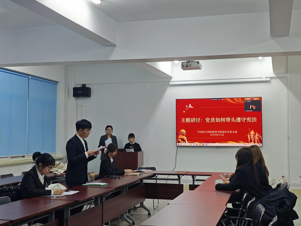 为持续深化理论学习,强化党员意识,增强法治观念,12月8日,全网最准彩票计划网官方 研究生党支部以线上线下相结合的形式,组织开展了“学习宪法精神,践行党员担当”12月主题党日活动。活动由党支部书记刘家馨主持,支部全体党员参加。